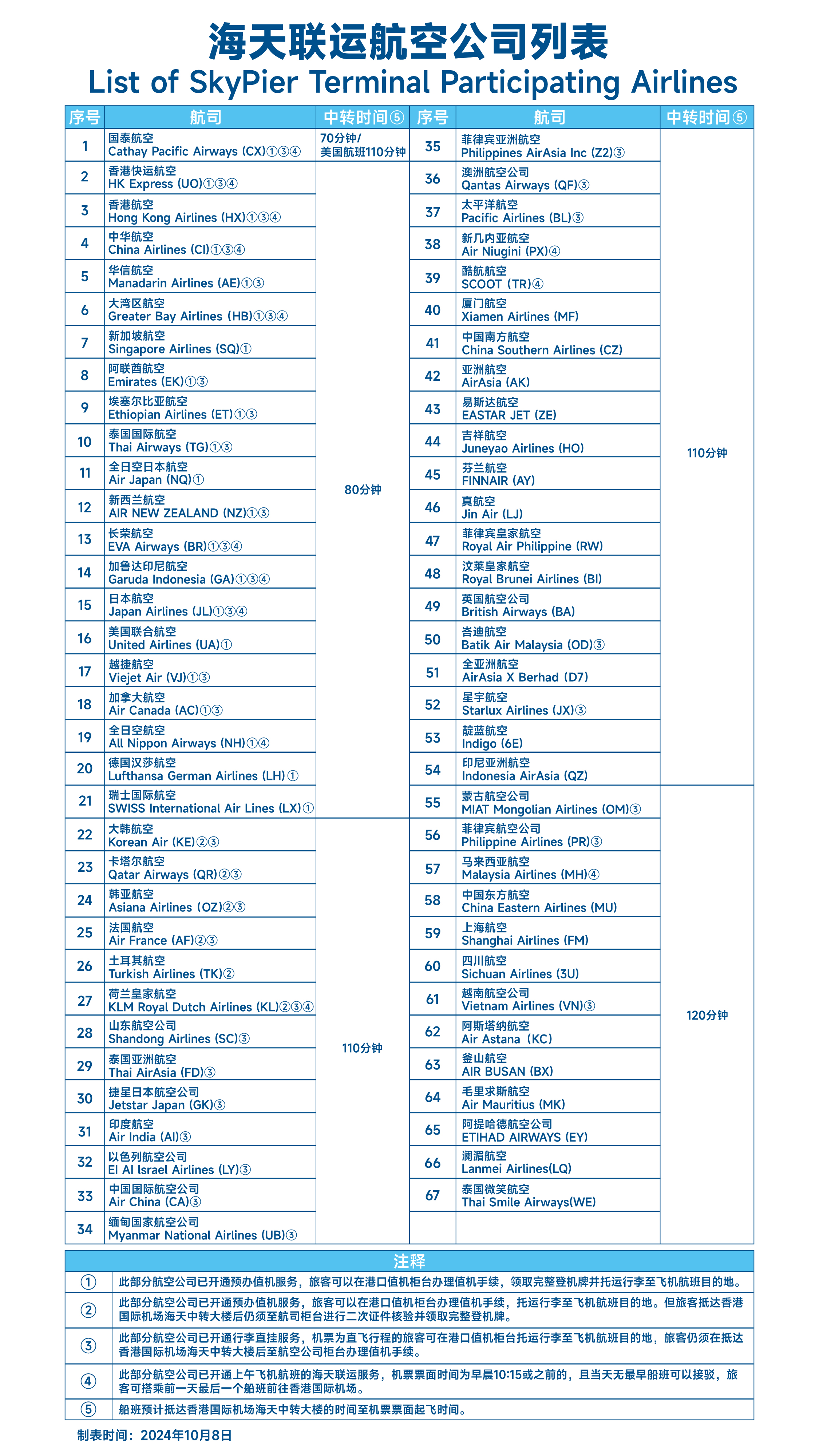 預訂香港機場航線船票的旅客,所選的航空公司應在海天聯運航空公司列表中。